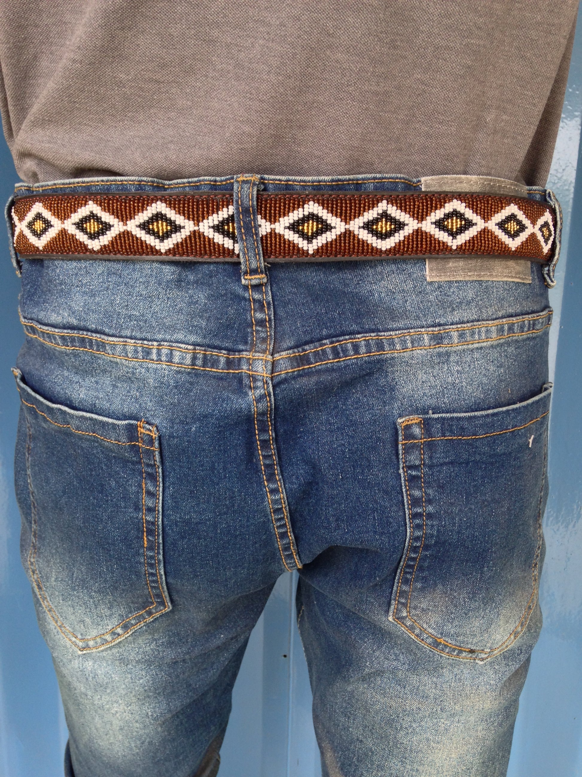 Handcrafted Maasai Belt - Brown Gold Geometric