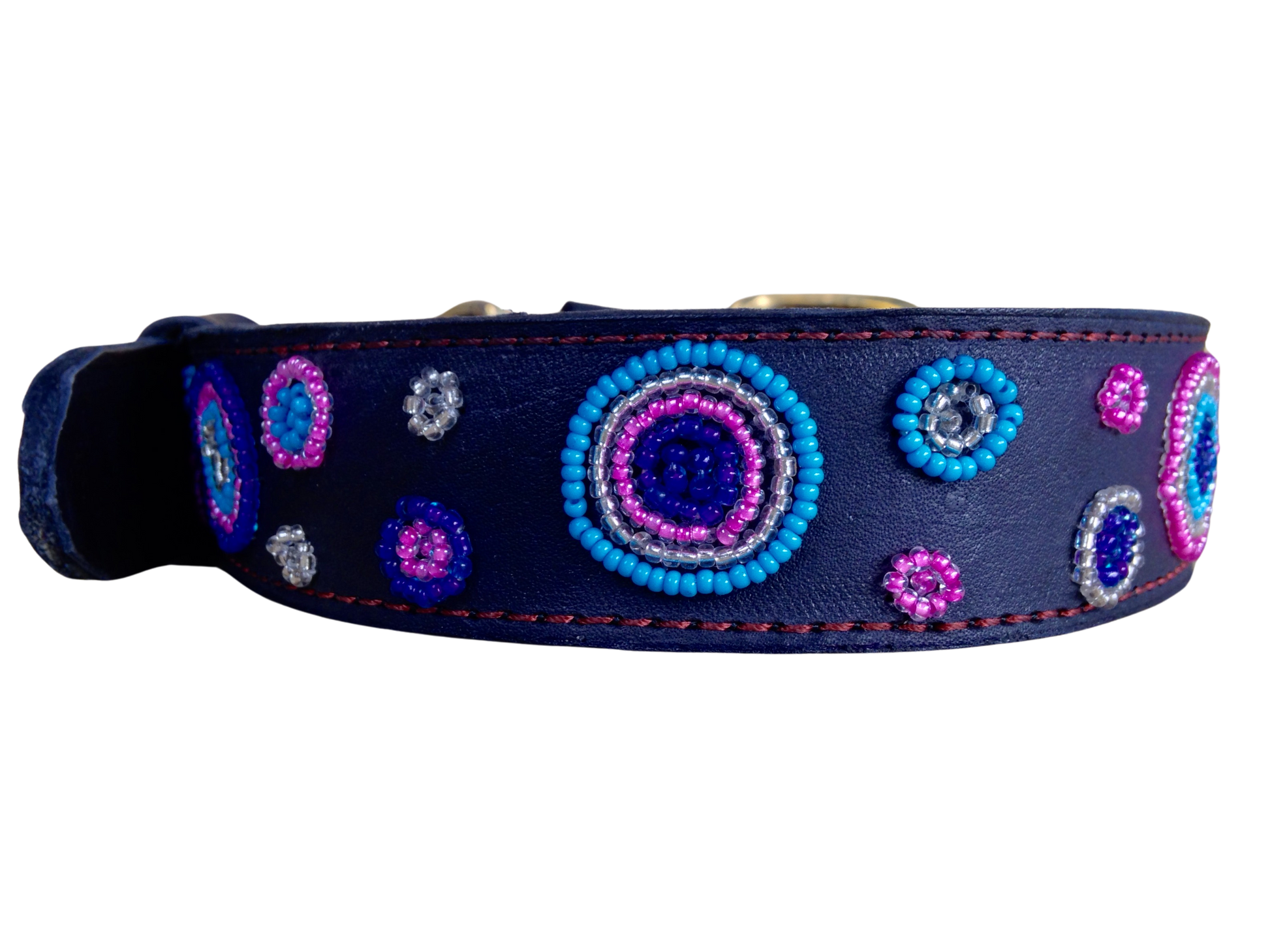 Handcrafted Maasai Dog Collar - Pink Blue Circles