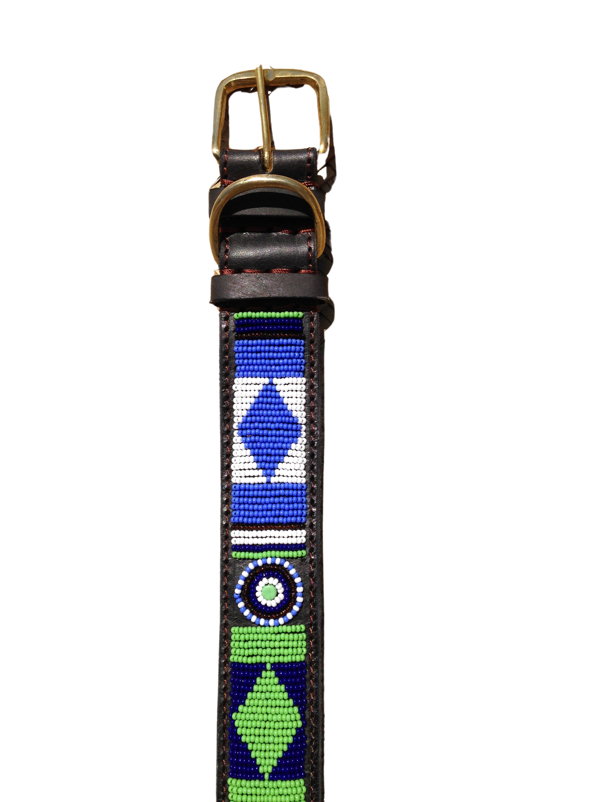 Handcrafted Maasai Dog Collar - Green/Blue Geometric