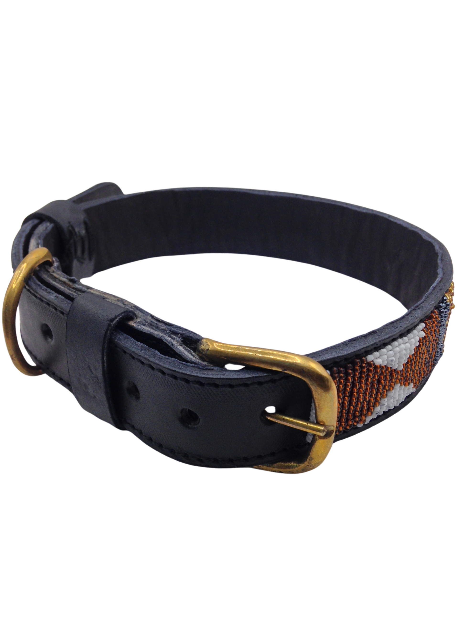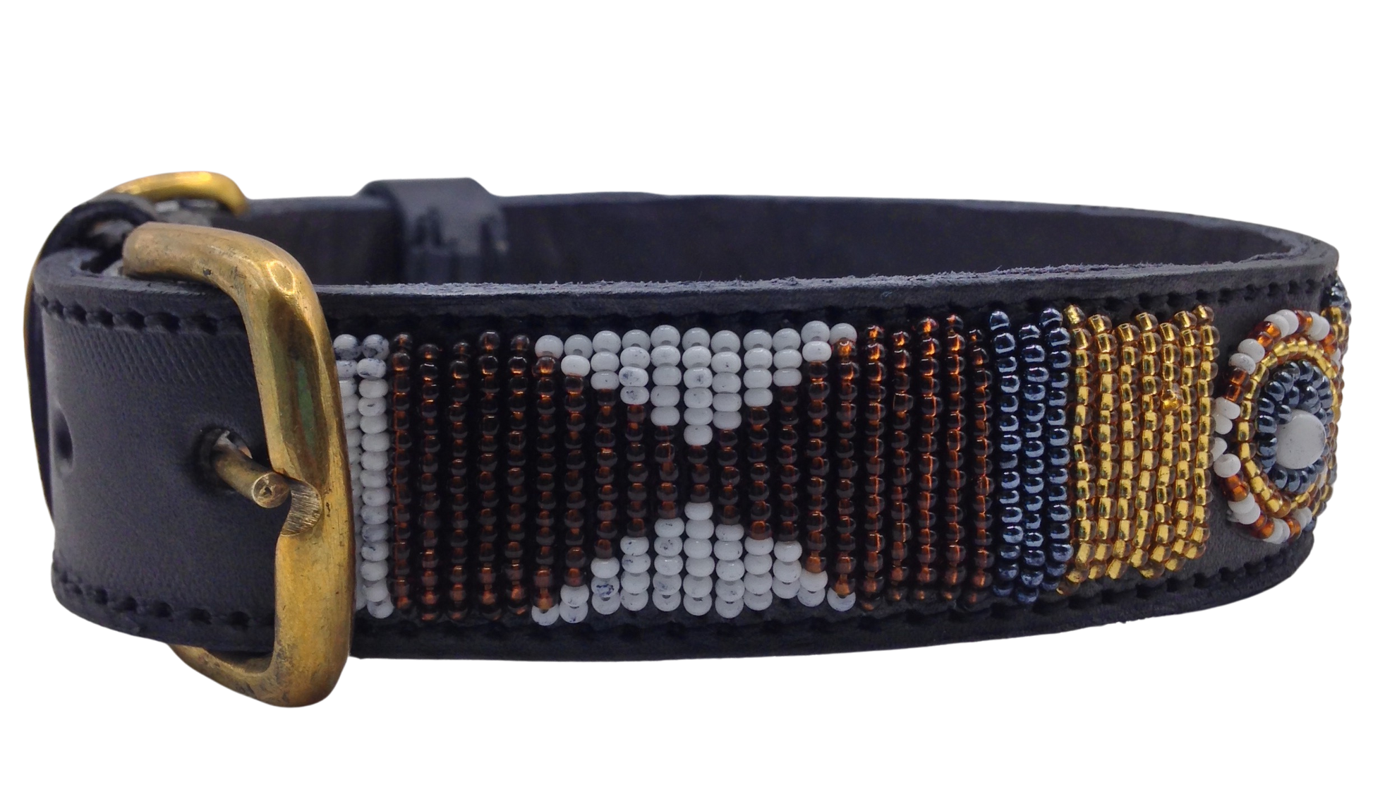 Handcrafted Maasai Dog Collar -Brown Gold Geometric