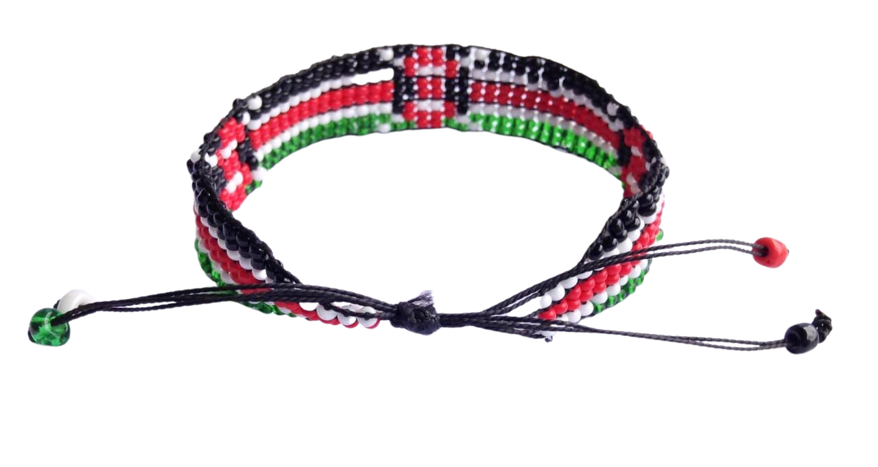 Wrap yourself in the vibrant colors of Kenya with this stunning, handcrafted beaded bracelet. Each bead is meticulously placed to reflect the Kenyan flag, making it a true symbol of national pride.
